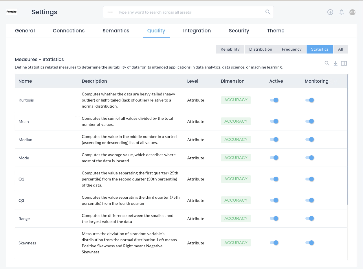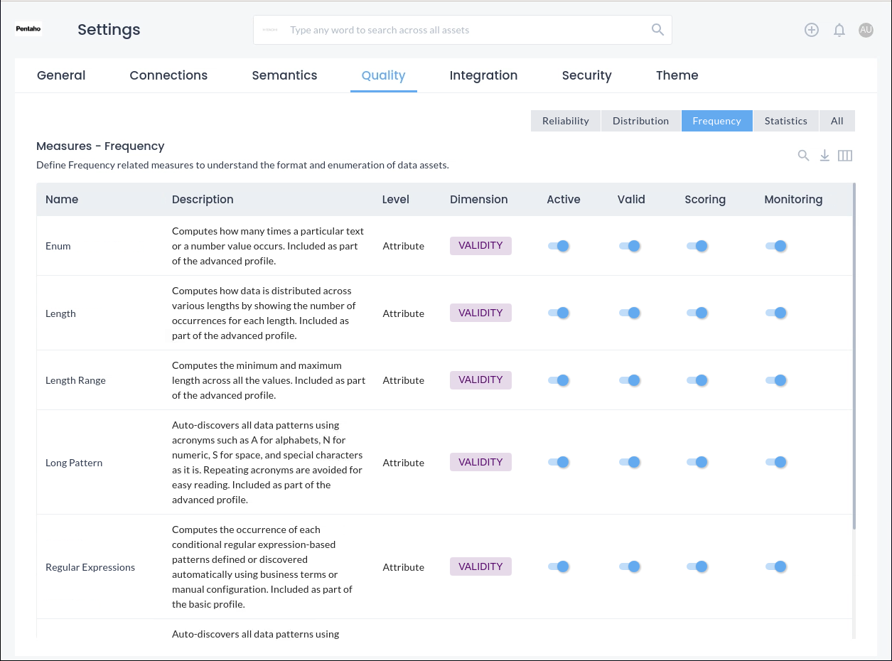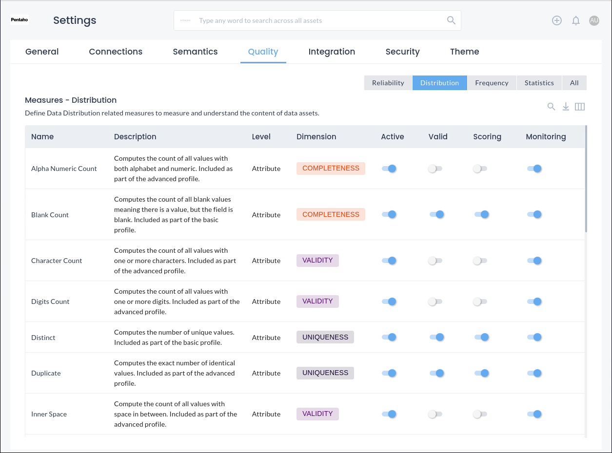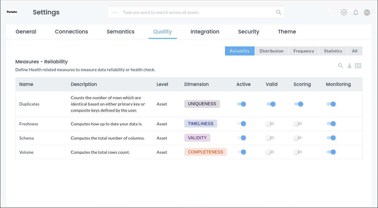 The Dimensions map to the six pillars of data quality, running SQL queries at the back end, enabling you to fine tune and create your own custom Dimensions.