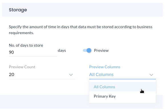 Once primary keys are sensed by the platform or manually input by the user under identifiers, the preview sections will show only the primary key based on the asset configuration defined under identifiers