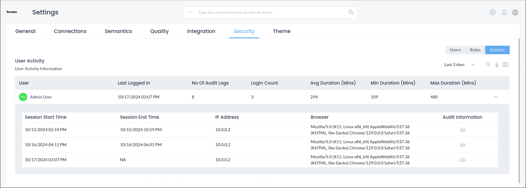 ● The admin/privileged user can also push the user sessions and user activity tables to the metadata repository