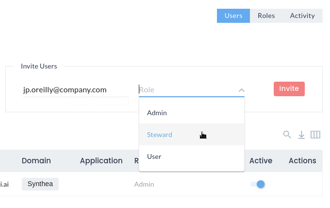 You can also invite Users from this section by providing the Email and Role details. The different default roles in PDQ are as follows: