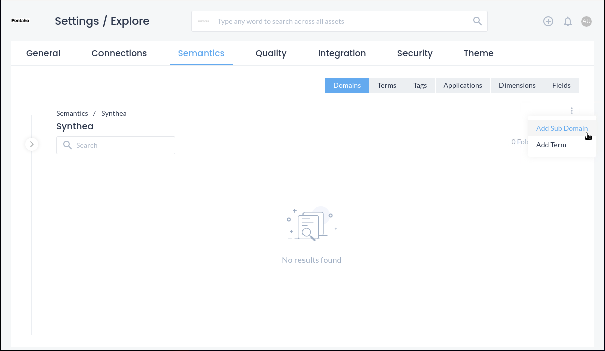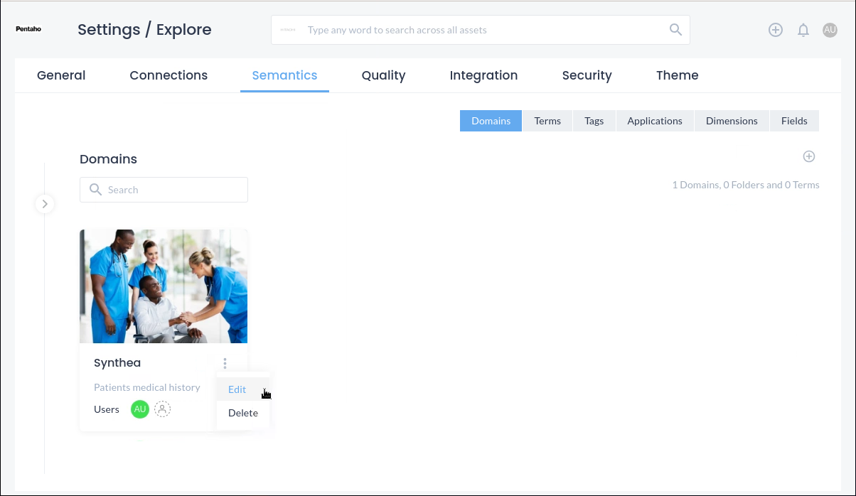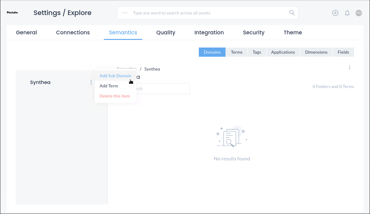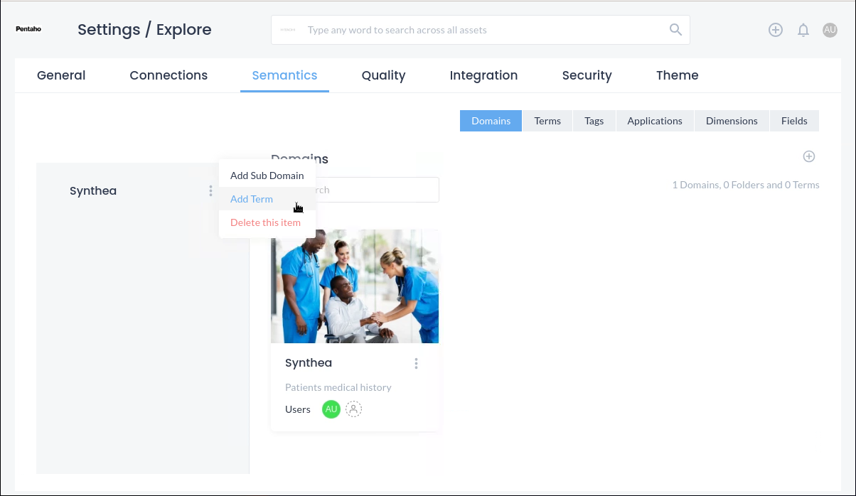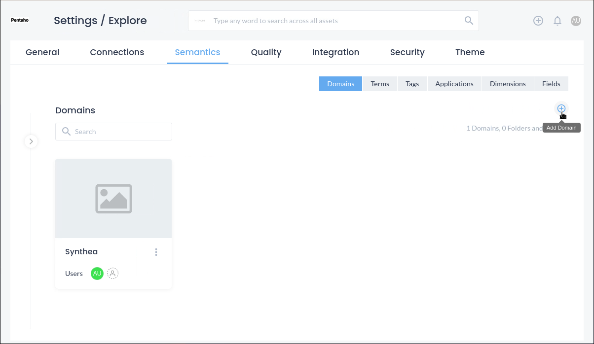 Under Semantics, the user can create domains that apply to the organization