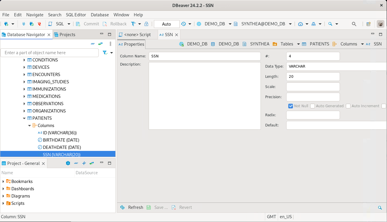 Lets take a look at the Patients SSN - Social Security Number.