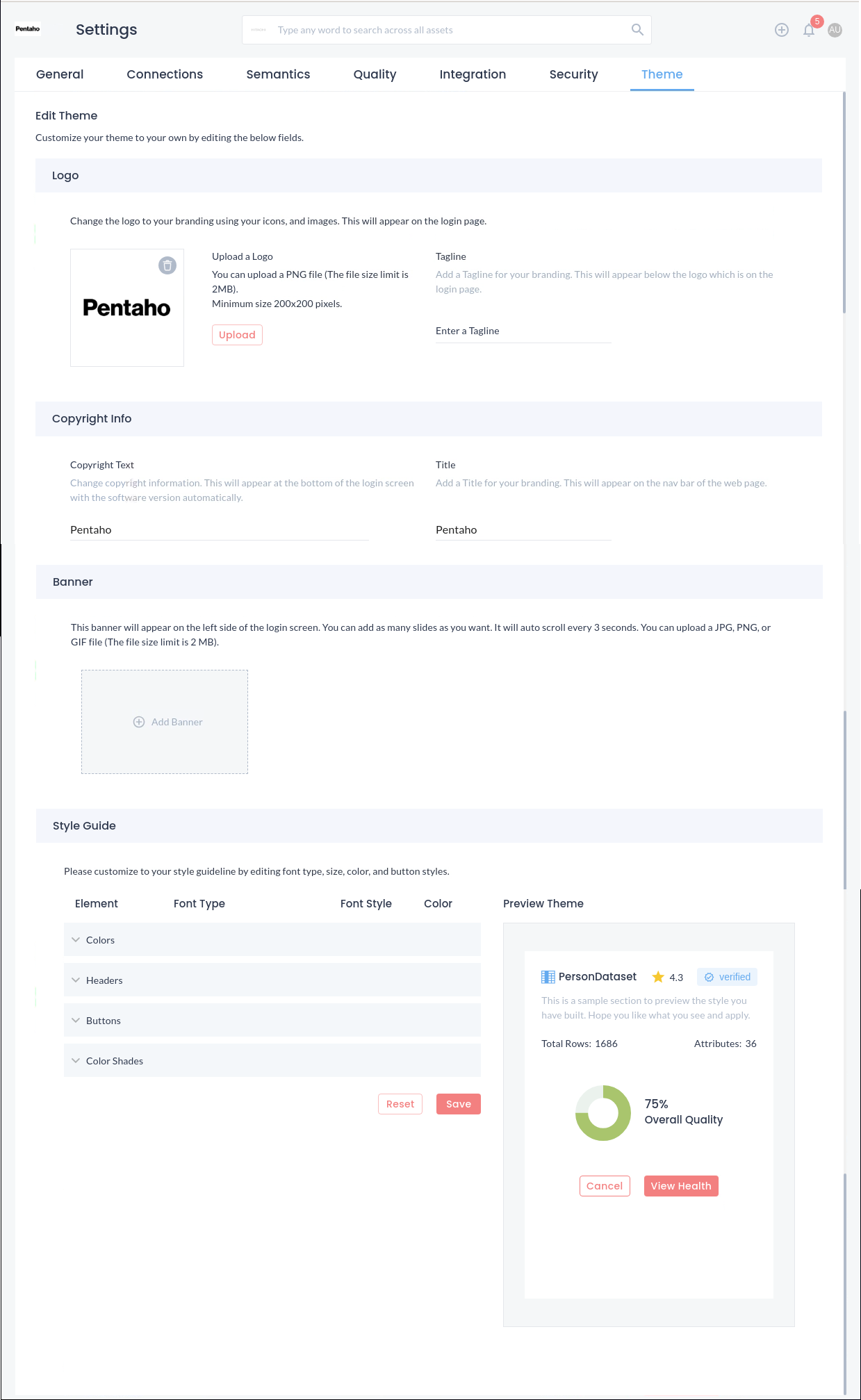● Style Guide - Customize the style guidelines as per the organization's requirements. The user is allowed to customize the fonts, colours of the headers, and other contents of the platform in this section.