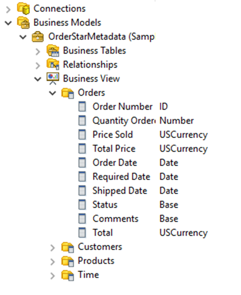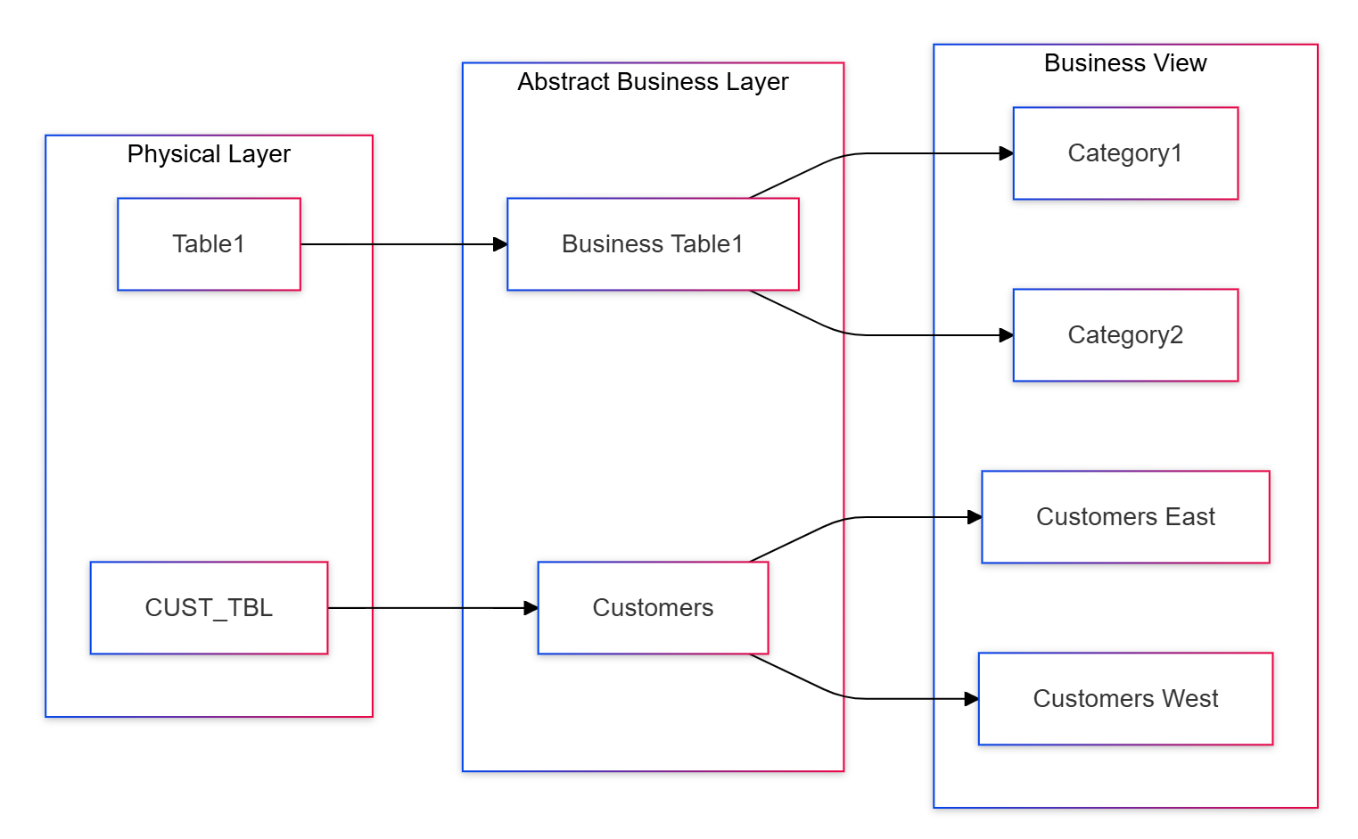 The Business View is the part of the business model that applications will operate against, and end-users will see. The Business View is nothing more than "buckets" (called categories) for you to re-arrange and re-organize your business columns in a fashion that makes sense to the consumers of the data.