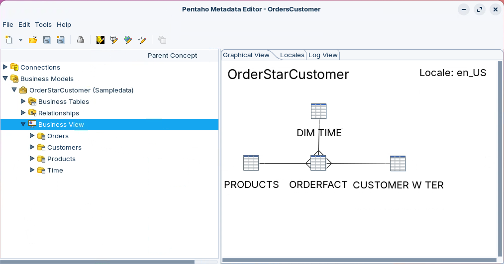 Start Pentaho Metadata Editor and create a new domain file for the OrderStarCustomer model