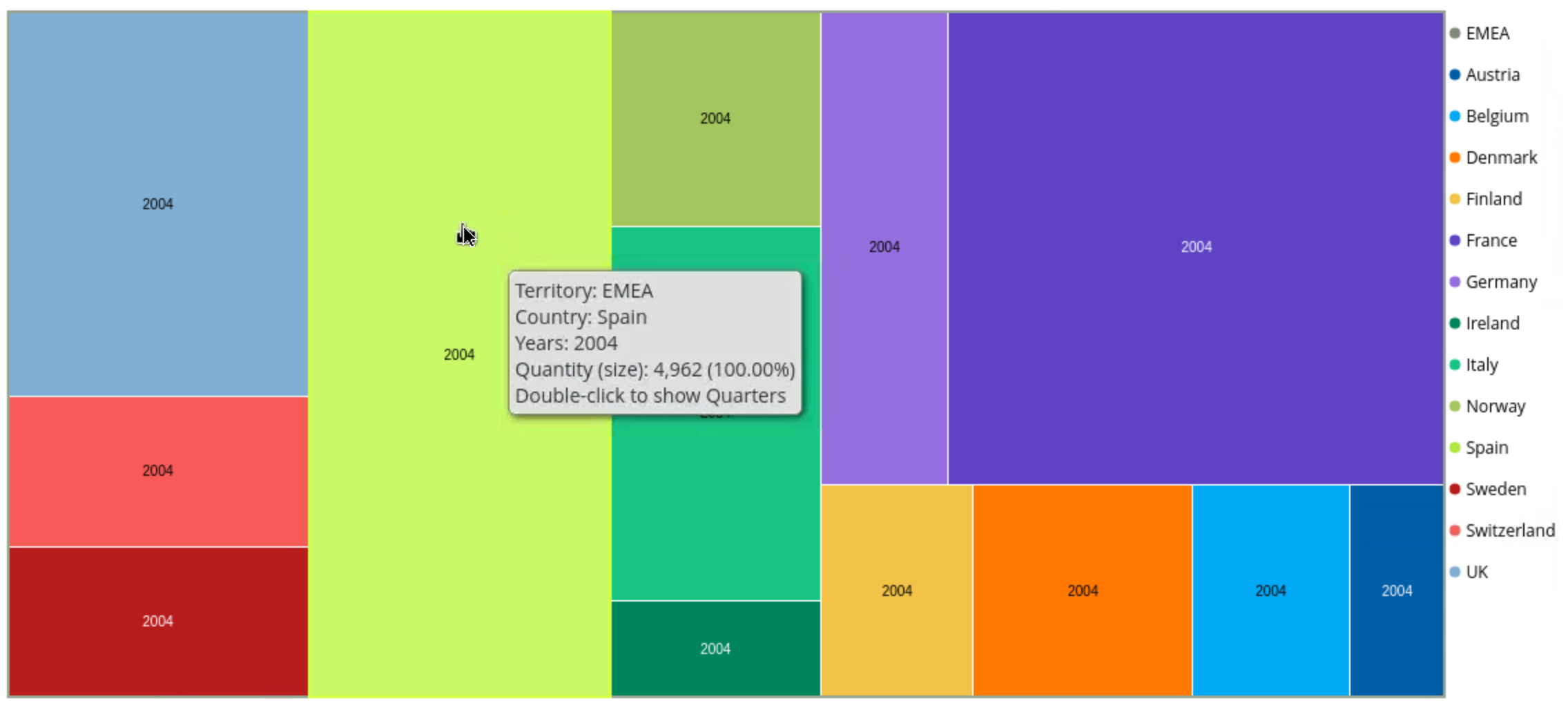 Apply filters to restrict the analysis to EMEA territory and the year 2004