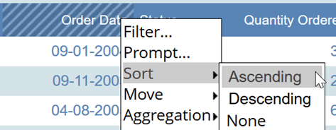Click the drop-down arrow next to the Order Date column header, and then select Sort > Ascending.