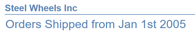 Add a report title, in the title area: Orders Shipped from Jan 1st 2005.
