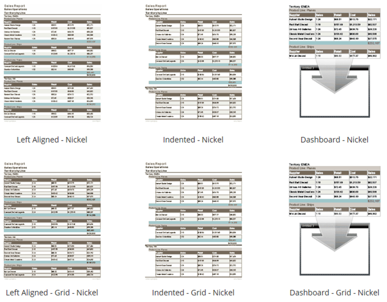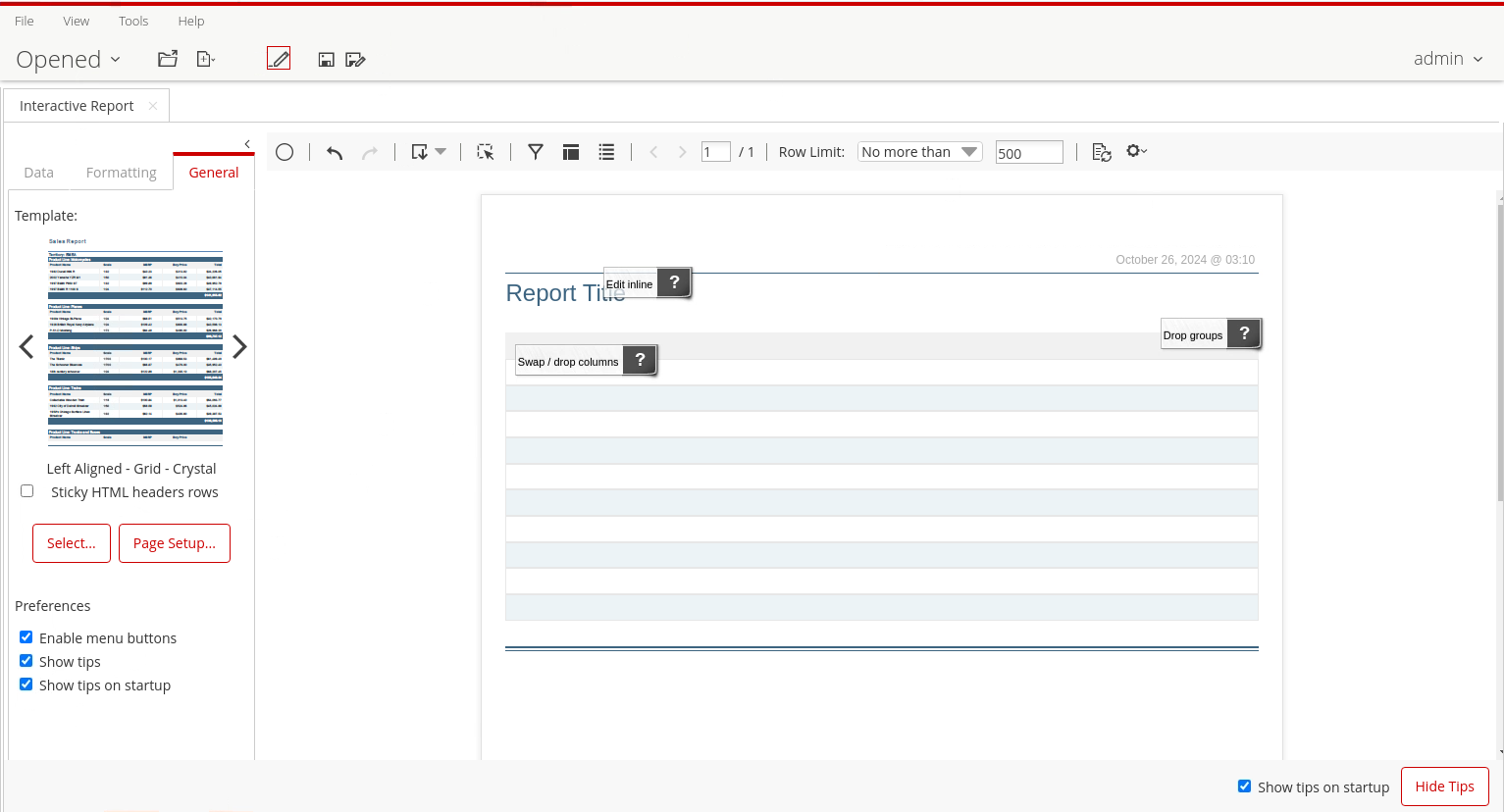 You can select a different template for your report using the General tab. You can define your own Template using Report Designer.