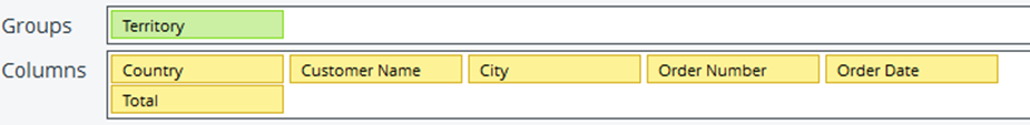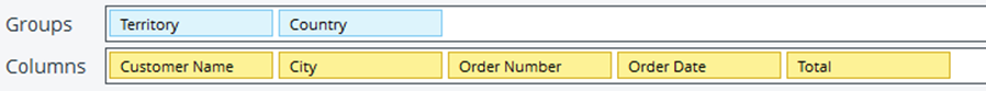To add a group for Territory, drag Territory, from the Data pane to the Groups line on the Layout panel.