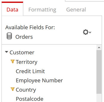 but you can see in the Data tab in the Selection pane that the available fields come from the Orders data source. The Data tab also identifies grouping and sorting information.