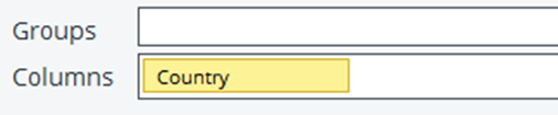 From the Data panel, select Country and drag it to the Columns line on the Layout panel.