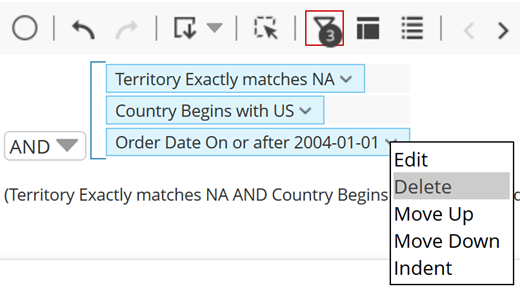 Filter the report to only show results for the North American Territory; Country is the USA, since January 1, 2004.