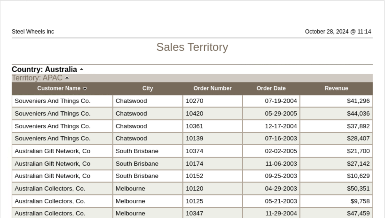 Understanding sales performance across geographic territories is a fundamental business intelligence requirement. In this comprehensive workshop, you'll build a professional Sales Order Report from the ground up using Pentaho's Interactive Reporting tool, learning how to transform raw sales data into an organized, actionable business report that reveals revenue patterns across territories, countries, and customers.