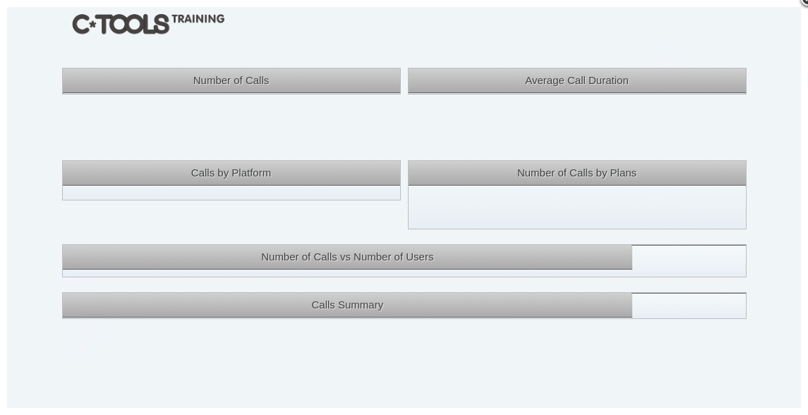 The second row contains two columns with the main KPIs: Number of Calls and Average Call Duration. Each column contains two rows: one for the header, and another for the data.