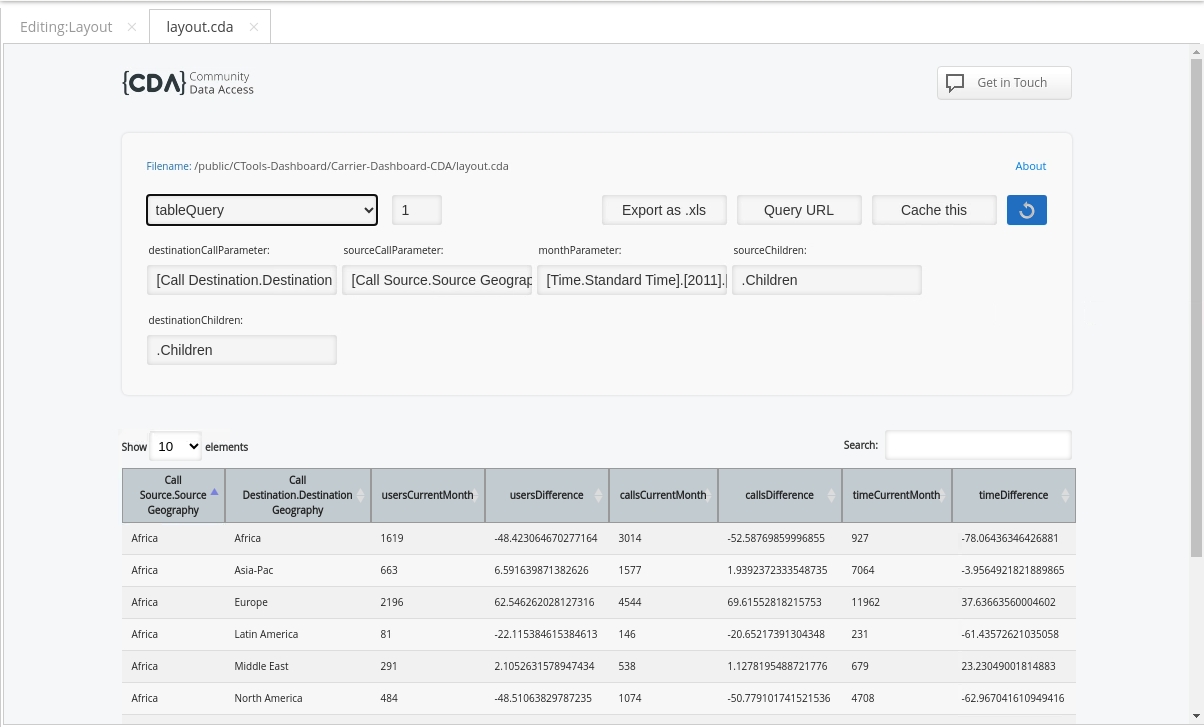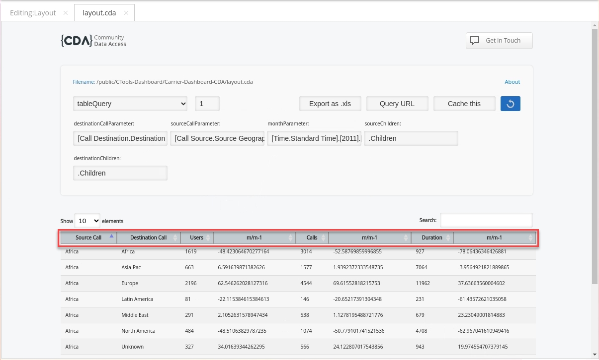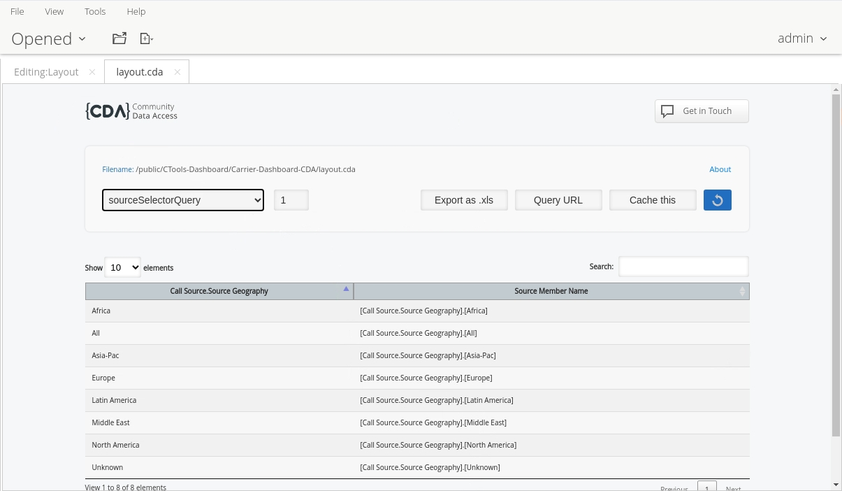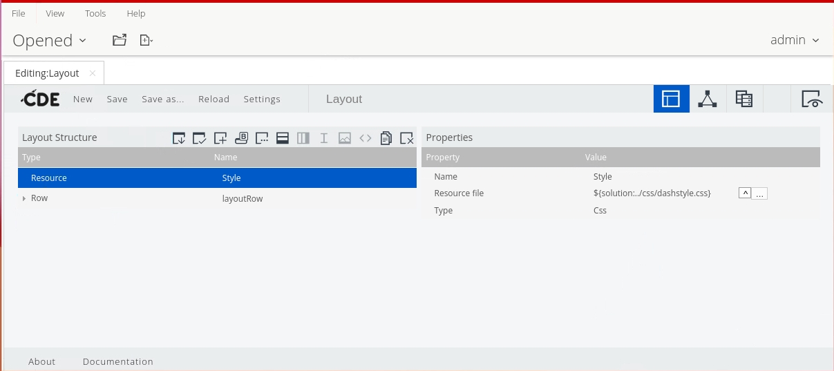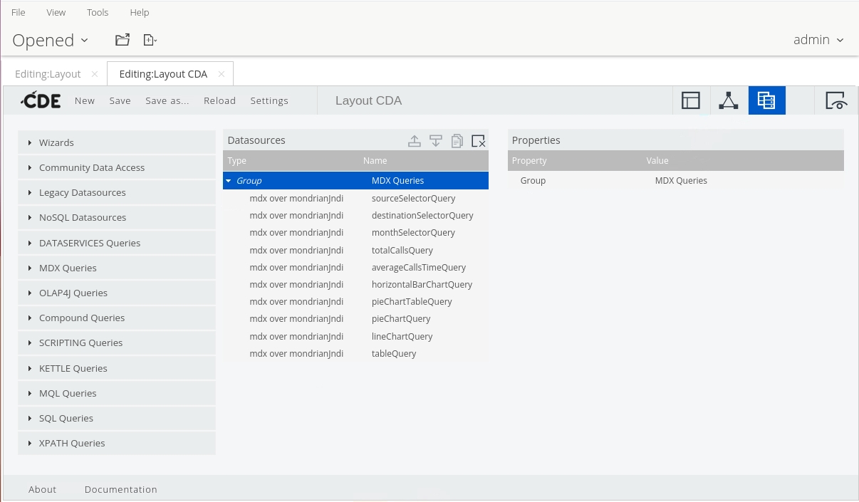 • From the Opened perspective, click the layout.cda tab.