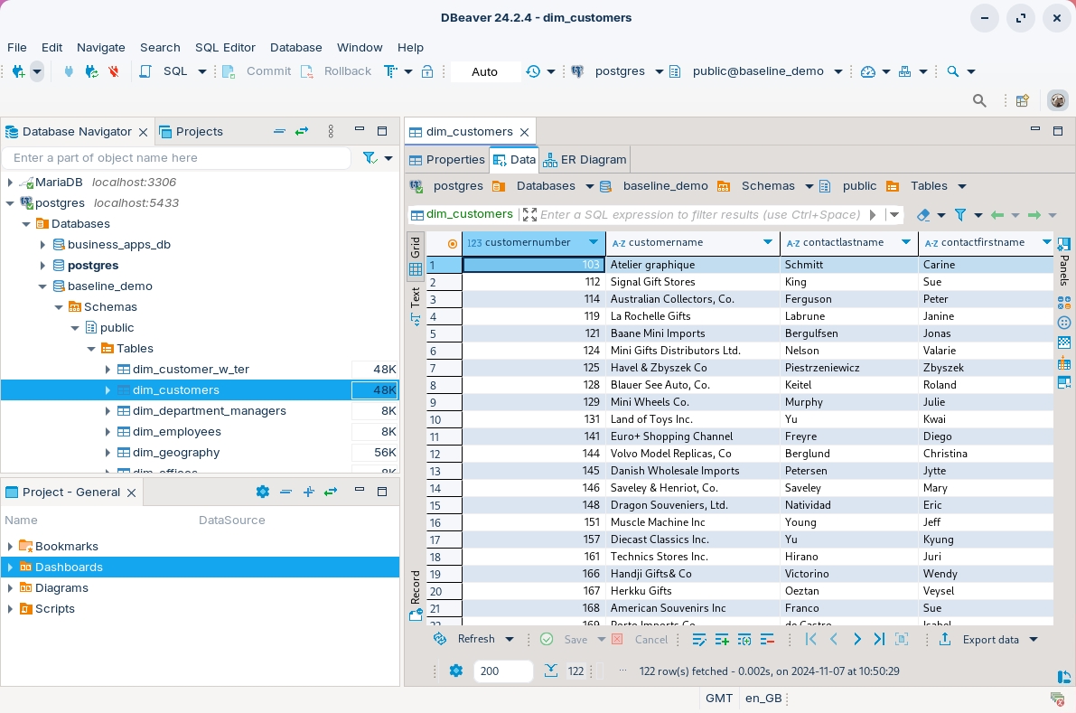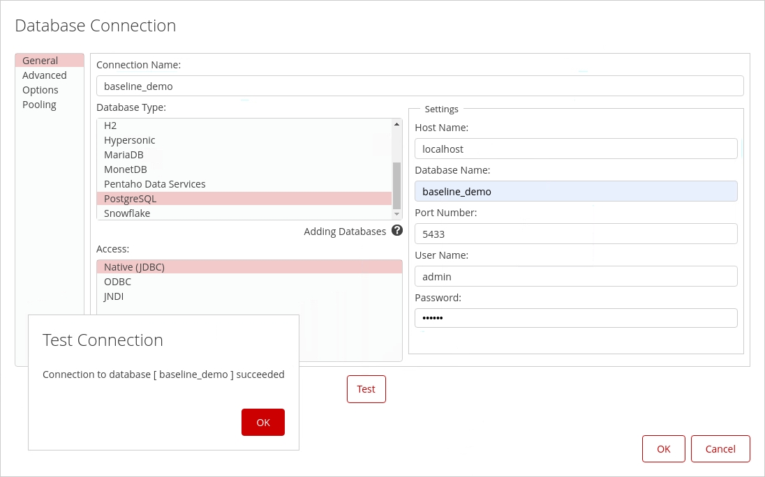 • define a connection to the baseline_demo databse