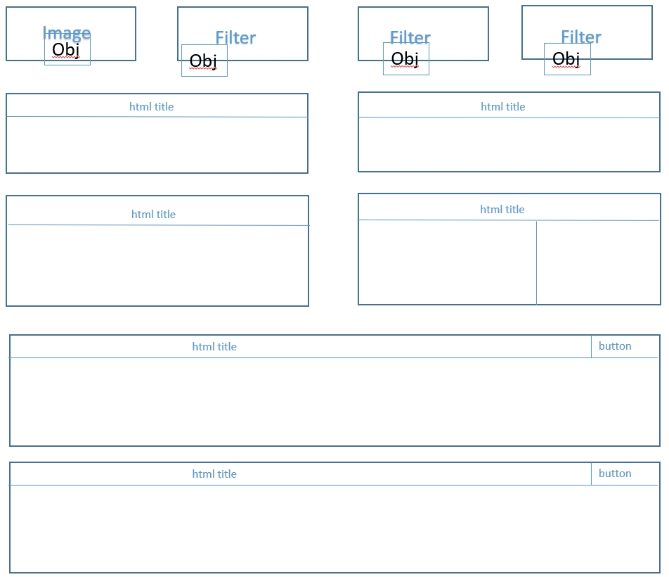 The third row has two columns, each with two rows.