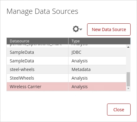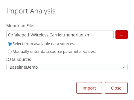 The Manage Data Sources also has the option to: Import Analysis