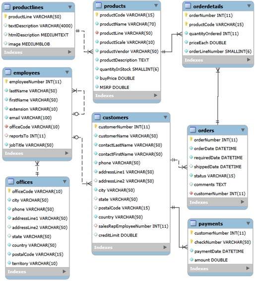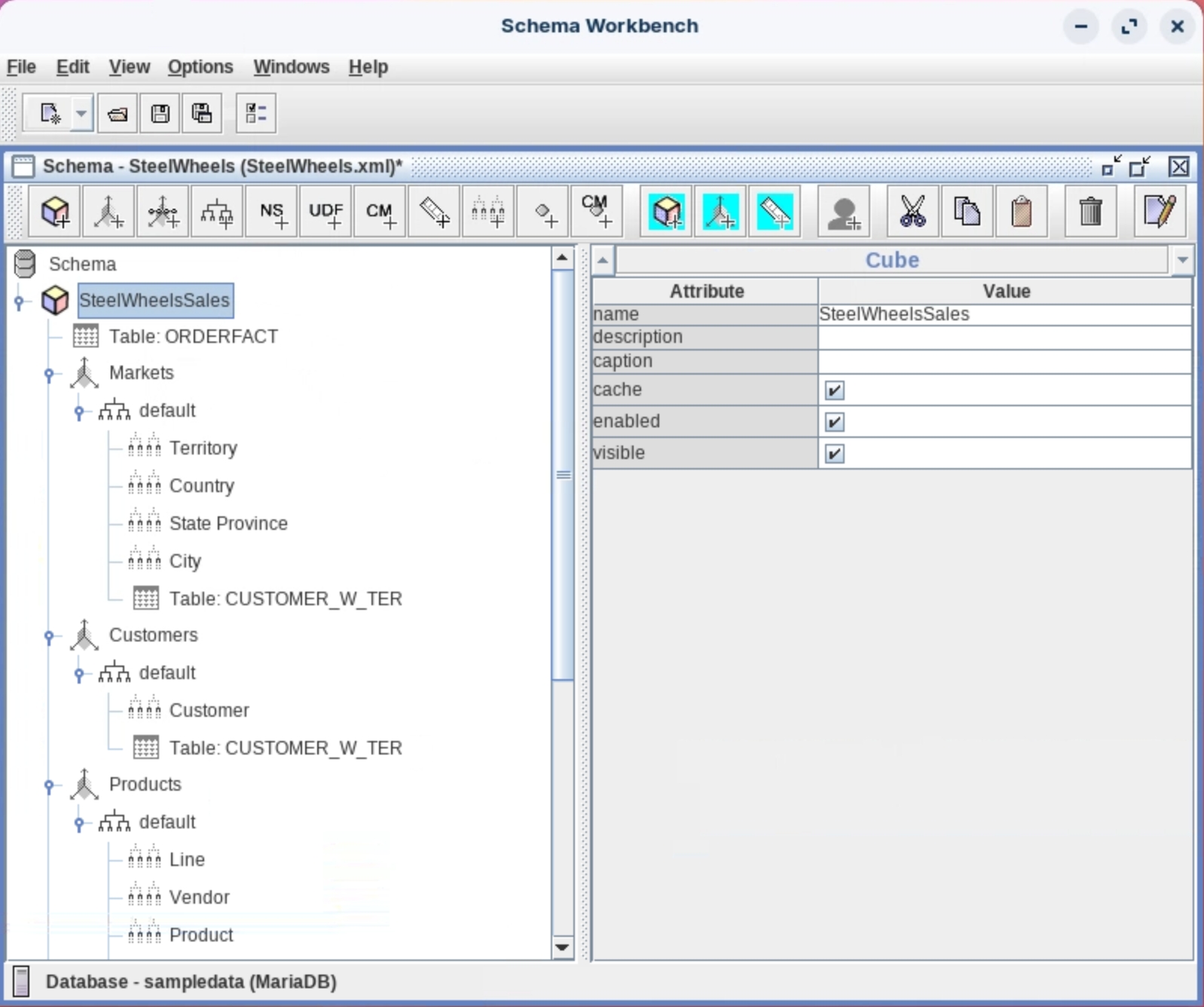 The Steel Wheels Inc sampledata dataset resides on a MariaDB.