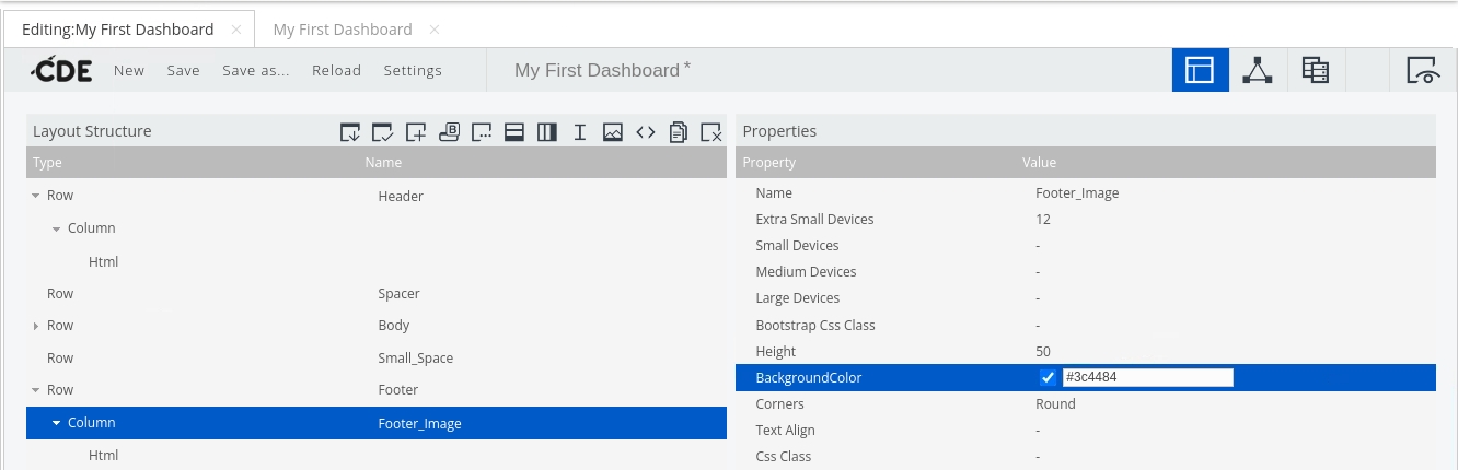 <h2 style="color:#FFFFFF; padding: 15px 0">My First Dashboard</h2> Click on the Preview icon - last one in toolbar.