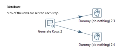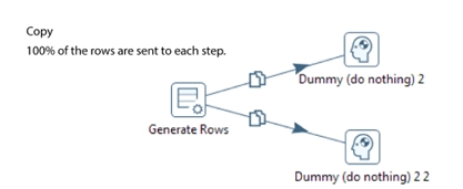 Most Steps can have multiple outgoing hops. These can be configured to either copy or distribute the data. Copy ensures all Steps receive a copy of the row of data; Distribute sends the data in a round robin fashion to each of the Steps.