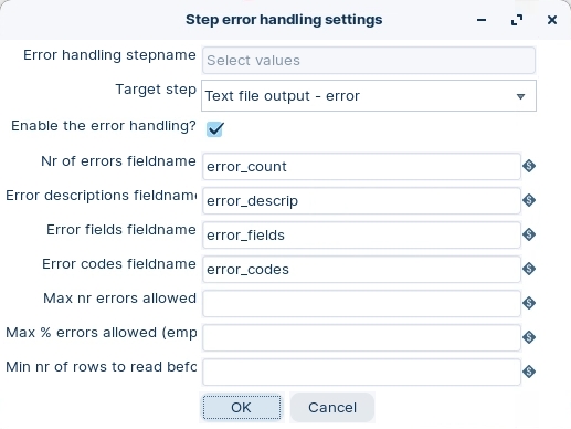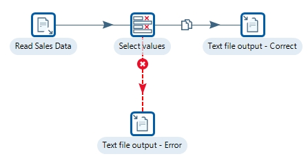 In the Select Values step, check the Date format: yyy-MM-dd. This is obviously an incorrect format which, the records are captured in the Text file output - Error.