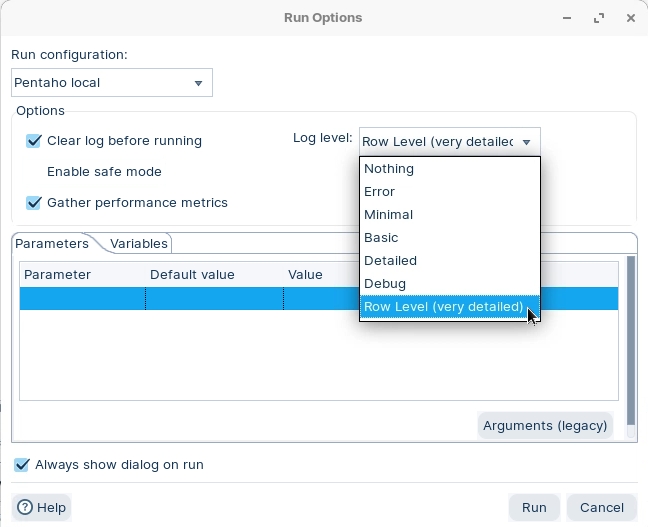 Building on the previous workshop, we'll take a look at the basic logging options. The degree of logging can be set from ‘Nothing’ to ‘Row Level’.