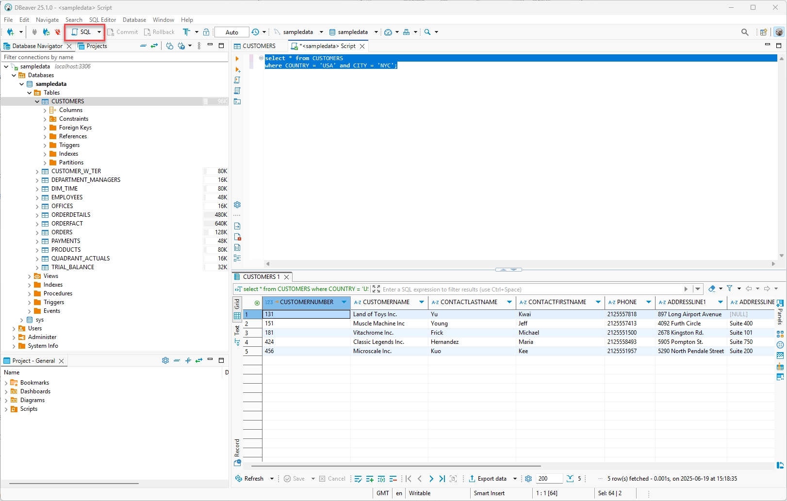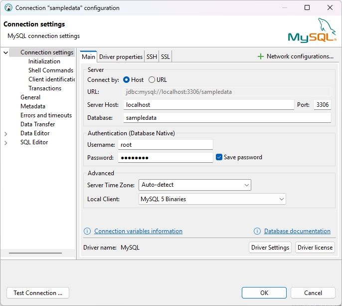 If you have completed the Setup requirements, then you should have a MySQL Docker container, exposed on port:3306 with sampledata databse.