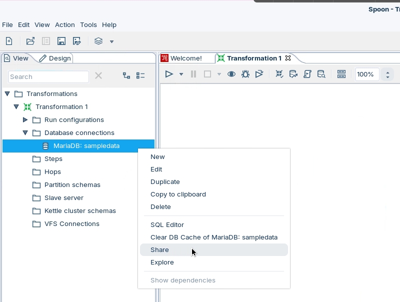 Any one of these actions opens a new Transformation tab for you to begin designing your transformation.