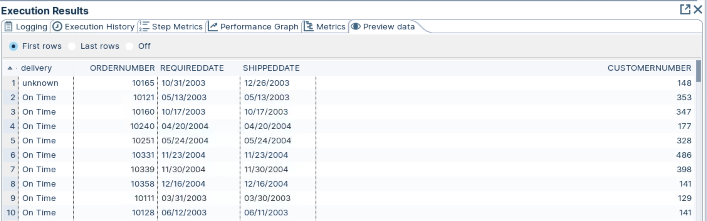 Connects to the ORDERS data table and extracts the required dataset where the status of the order is ‘Shipped’.