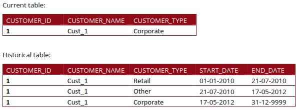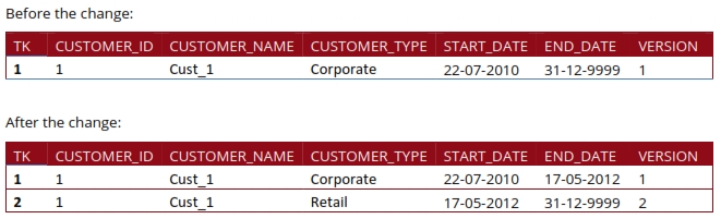 Slowly Changing Dimensions (SCD) - dimensions that change slowly over time, rather than changing on regular schedule, time-base. In a Data Warehouse, there is a need to track changes in dimension attributes in order to report historical data. In other words, implementing one of the SCD types should enable users assigning proper dimension's attribute value for given date. Example of such dimensions could be: customer, geography, employee.