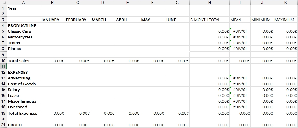 Open the following template in Excel: