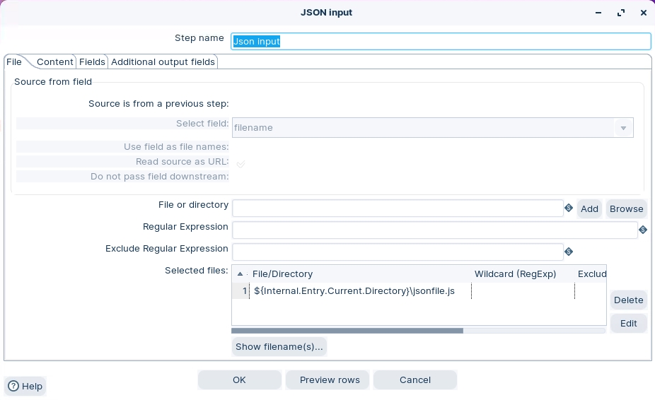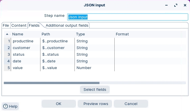 The JSON Input step extracts relevant portions out of JSON structures, files or incoming fields, and outputs rows.