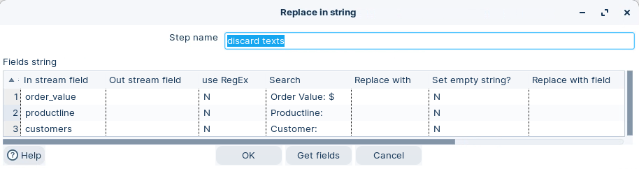 Time to tidy up the order\_value stream field data. In this step, you replace the `Order Value:` label with an empty string.