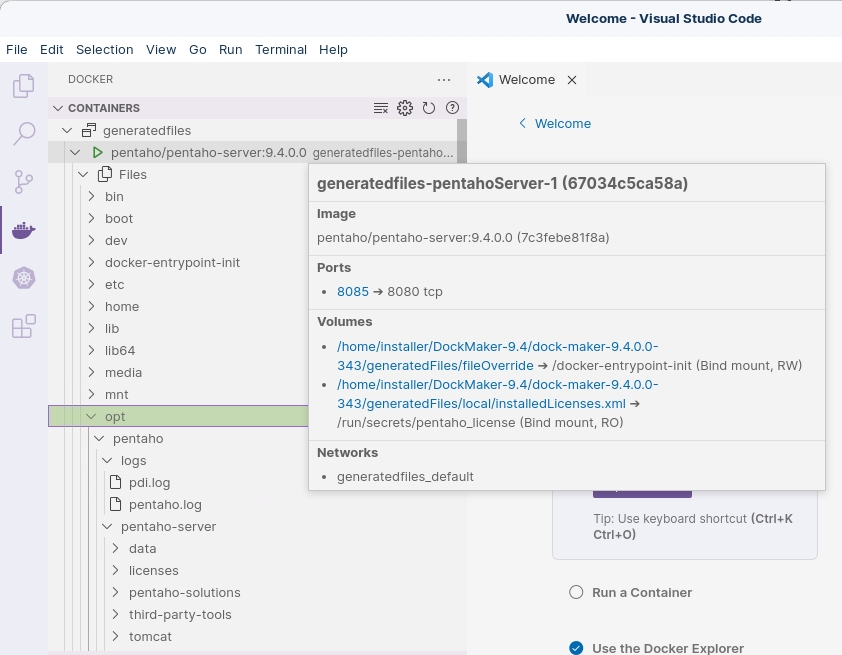 docker infoCheck the Pentaho artefacts have been copied over to the artifactCache directory: