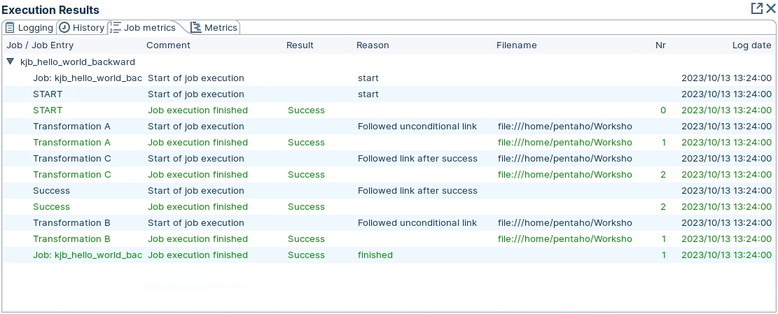 In this workshop, the Job Entries were placed on the canvas in the following order: