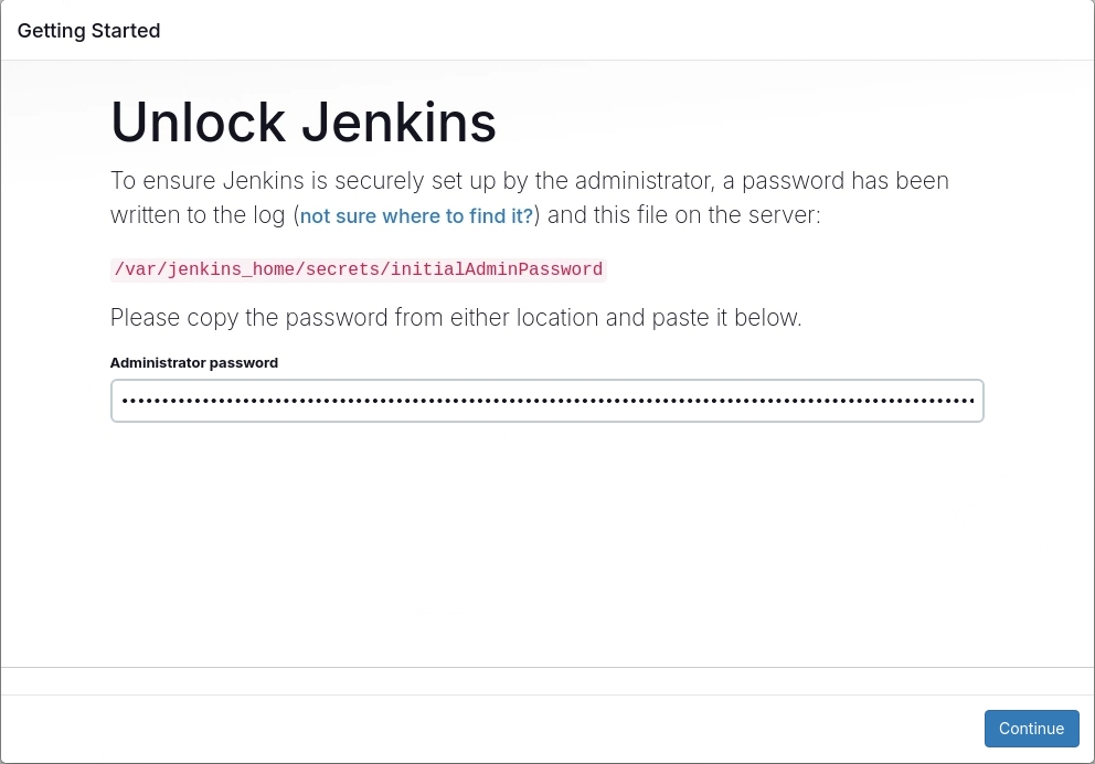 jenkins | This may also be found at: /var/jenkins_home/secrets/initialAdminPassword