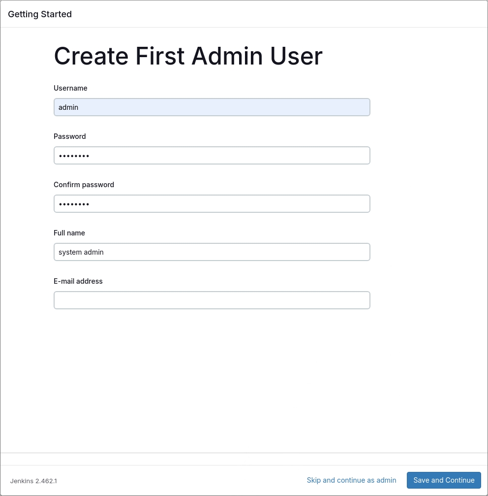 jenkins | Jenkins initial setup is required. An admin user has been created and a password generated.