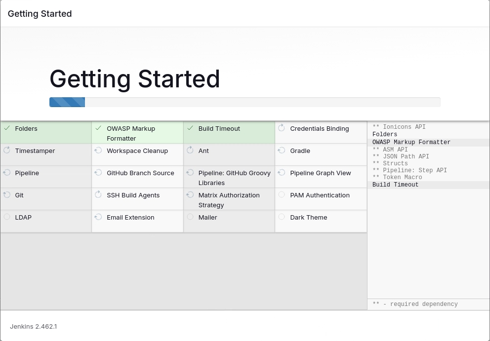 Jenkins + plugins have been installed and configured.