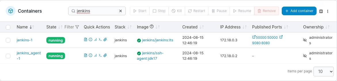 ✔ Container jenkins-1 Started 3.6s