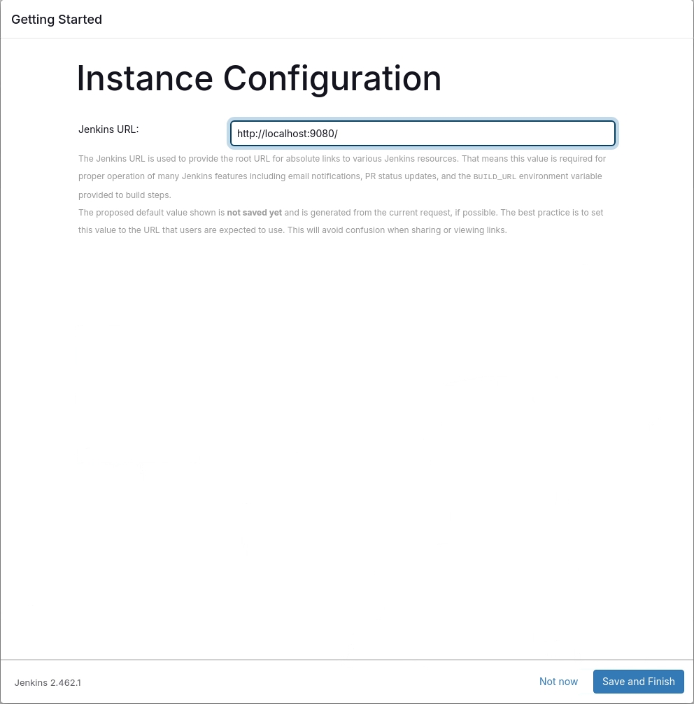 Save & Finish. You are now able to access Jenkins with the default admin account.