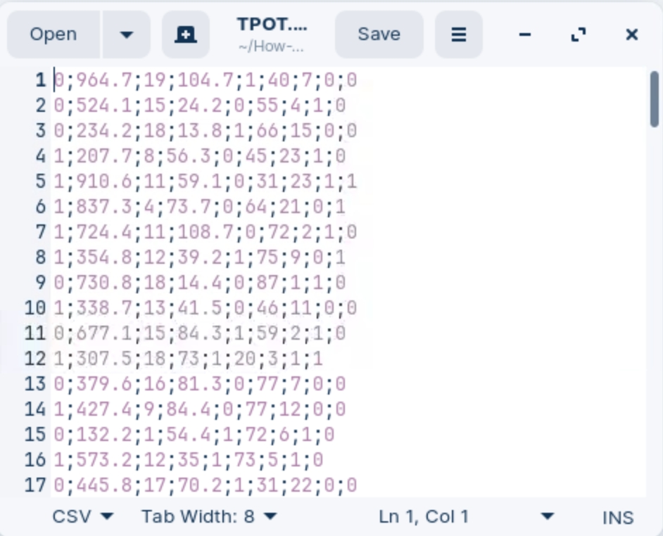 dataset = pd.read_csv('TPOT.csv', sep= ';', header=None)