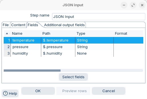 This step returns records that were previously generated by another transformation in a job. The records were passed to this step using either the Copy rows to result step or the Transformation Executor step. You can enter the metadata of the fields you are expecting from the previous transformation in a job.