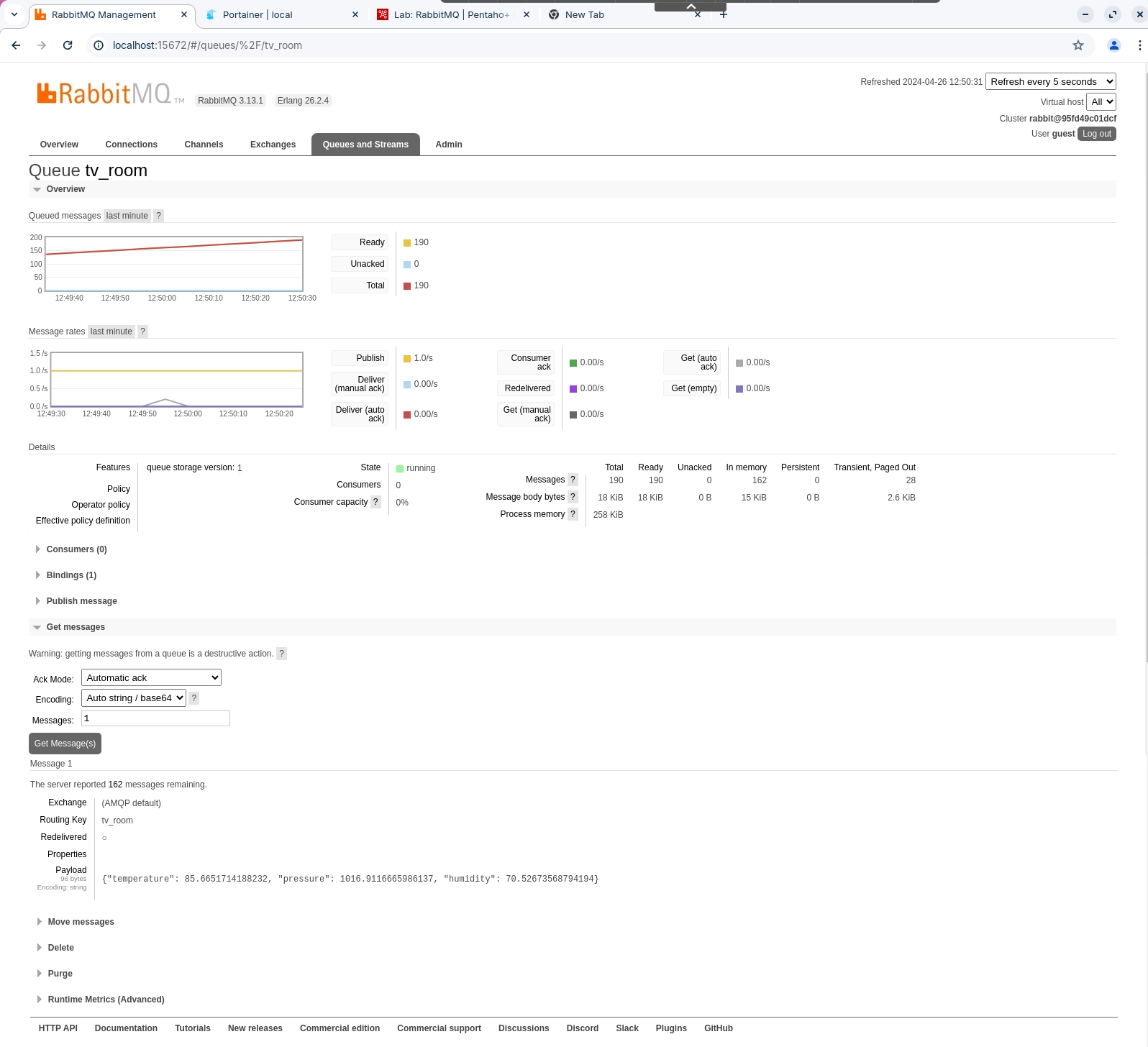 python3 sensor_tv_room.pypentaho@pentaho-virtual-machine:~/Workshop--Data-Integration/Labs/Module 3 - Data Sources/Streaming Data/03 RabbitMQ$ python3 sensor_tv_room.py