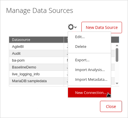 Desde la rueda desplegable, selecciona: Nueva Conexión.