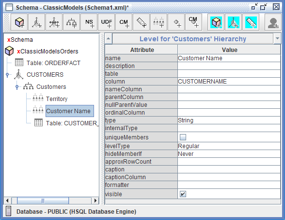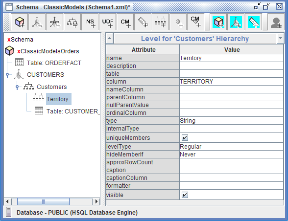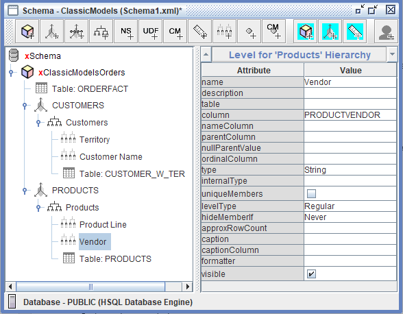 Los niveles en el esquema ClassicModelsOrders sirven como los bloques de construcción de la navegación jerárquica, permitiendo a los usuarios analizar los datos de ventas en diferentes niveles de granularidad y detalle. Organizan la información de categorías amplias a detalles específicos, permitiendo a los usuarios de negocio comenzar con resúmenes de alto nivel (como ventas totales por Territory o Product Line) y progresivamente profundizar en detalles más finos (nombres individuales de clientes o proveedores específicos) para investigar patrones, identificar tendencias y responder preguntas comerciales detalladas.