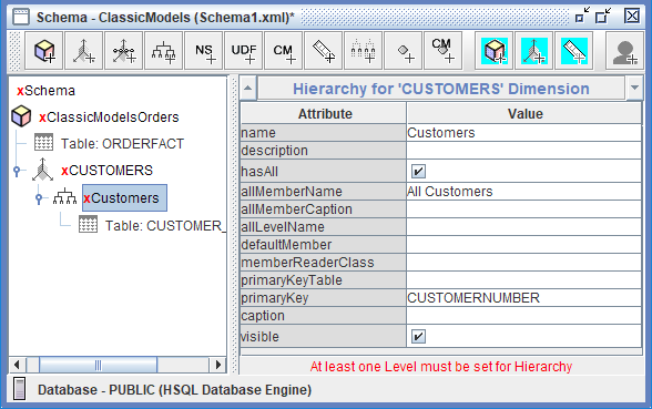 Para ver la Jerarquía, en el panel izquierdo, expande CUSTOMERS y luego haz clic: Nueva Jerarquía 0.
