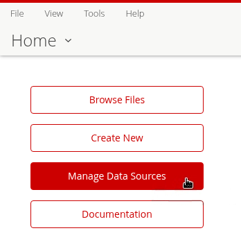 Inicia sesión en la Consola de Pentaho Server (como Admin) > Administrar Fuentes de Datos.