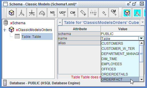 Haz clic en el Valor para name, selecciona PUBLIC > ORDERFACT.